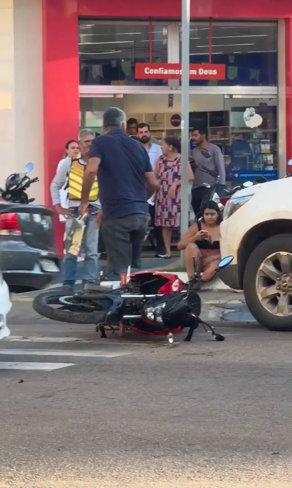 De acordo com imagens registradas no local, a moto ficou caída na pista após o impacto, mas, aparentemente, não houve vítimas.