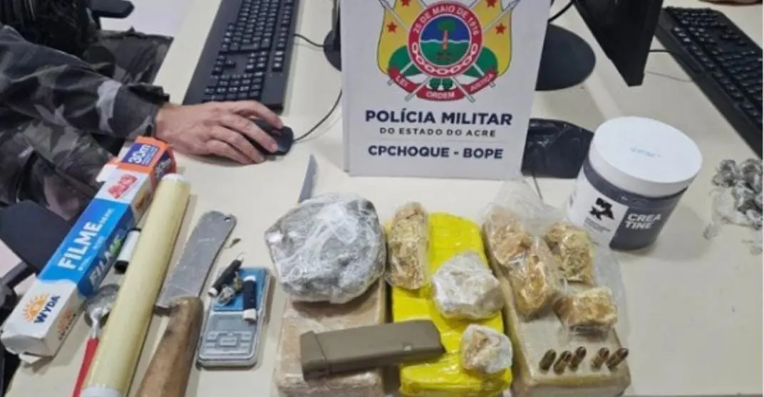 A Polícia Militar do Acre prendeu, na tarde de terça-feira (10), um homem suspeito de envolvimento com o tráfico de drogas no bairro Tancredo Neves. A ação foi realizada por equipes da Companhia de Policiamento de Choque (Cpchoque), após uma denúncia anônima alertar sobre a comercialização de entorpecentes na região.