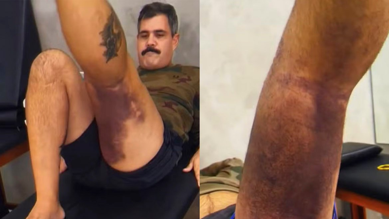 Juliano Cazarré exibe hematomas chocantes ao iniciar reabilitação após cirurgia no joelho