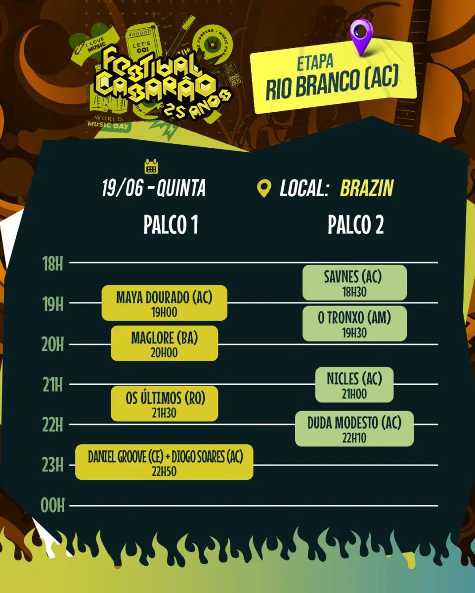Dessa vez a semana começa agitada, já que o Festival Casarão acontece nesta quarta-feira, acontecendo simultaneamente em diversas capitais do país e Rio Branco não vai ficar de fora!