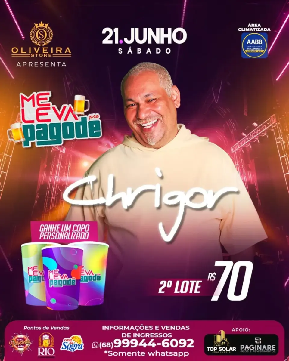 Atração mais que especial pra uma edição diferenciada do Me Leva Pro Pagode da AABB, com Chrigor agitando os corações.