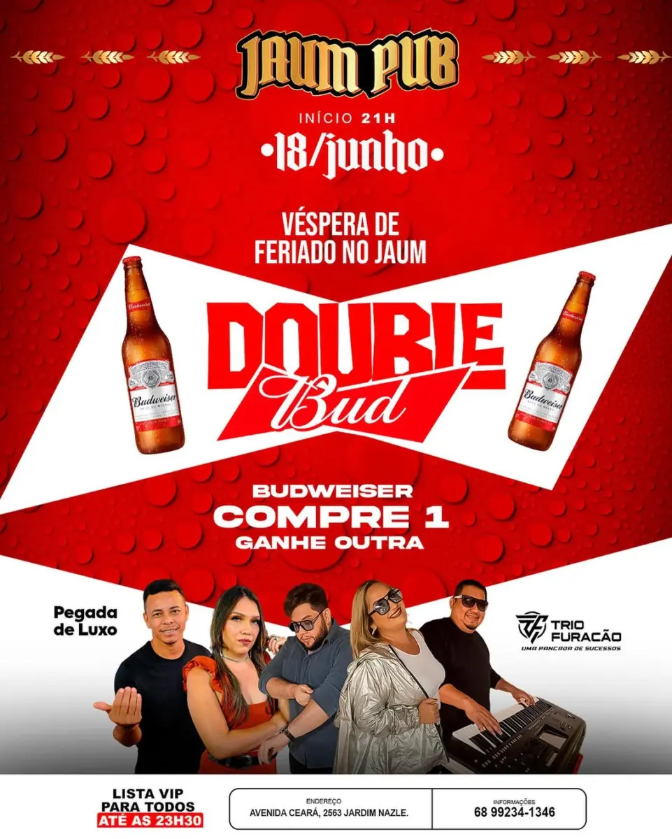 Jaum dá as caras com o dobro de festa, já que o tema da noite é Double Bud, para os amantes da cervejaria norte-americana.