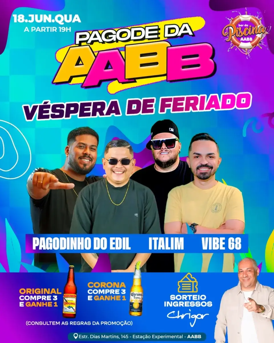 O Bar Piscina da AABB também vai queimar a largada com o feriadão, esquentando os motores com aquele pagodinho que só os melhores sabem fazer!