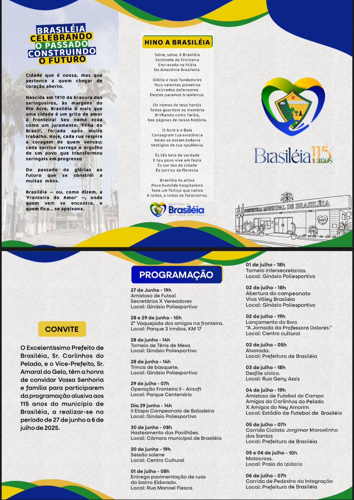O lançamento do livro “A Jornada da Professora Dolores” no dia 02 de julho, às 19h, no Centro Cultural, em Brasiléia/AC é esperado com grandes expectativas, simbolizando a valorização da cultura e da arte de “educar”, com evento de entrega da obra marcado para ocorrer estrategicamente como parte das comemorações pelo aniversário do município, que é dia 03 de julho.