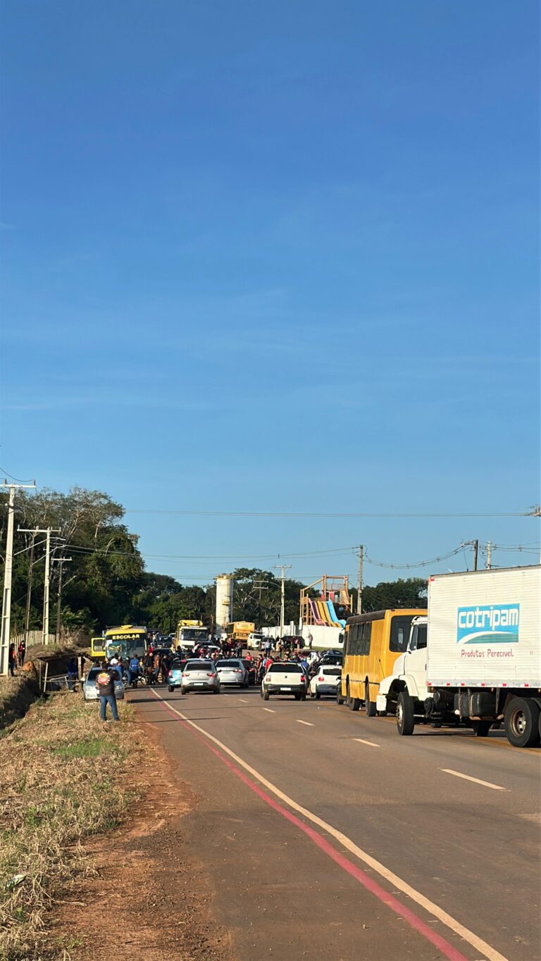 O protesto causou uma fila quilométrica na rodovia, que liga os municípios do Alto Acre à capital Rio Branco.