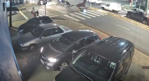 Um motociclista foi surpreendido e atropelado por um cavalo que puxava uma charrete em alta velocidade no cruzamento da Avenida Cillo com a Rua dos Cravos, no bairro Jardim São José, em Americana (SP). O acidente ocorreu no fim da tarde desta terça-feira (3), por volta das 17h50, e foi registrado por câmeras de segurança instaladas na região.
