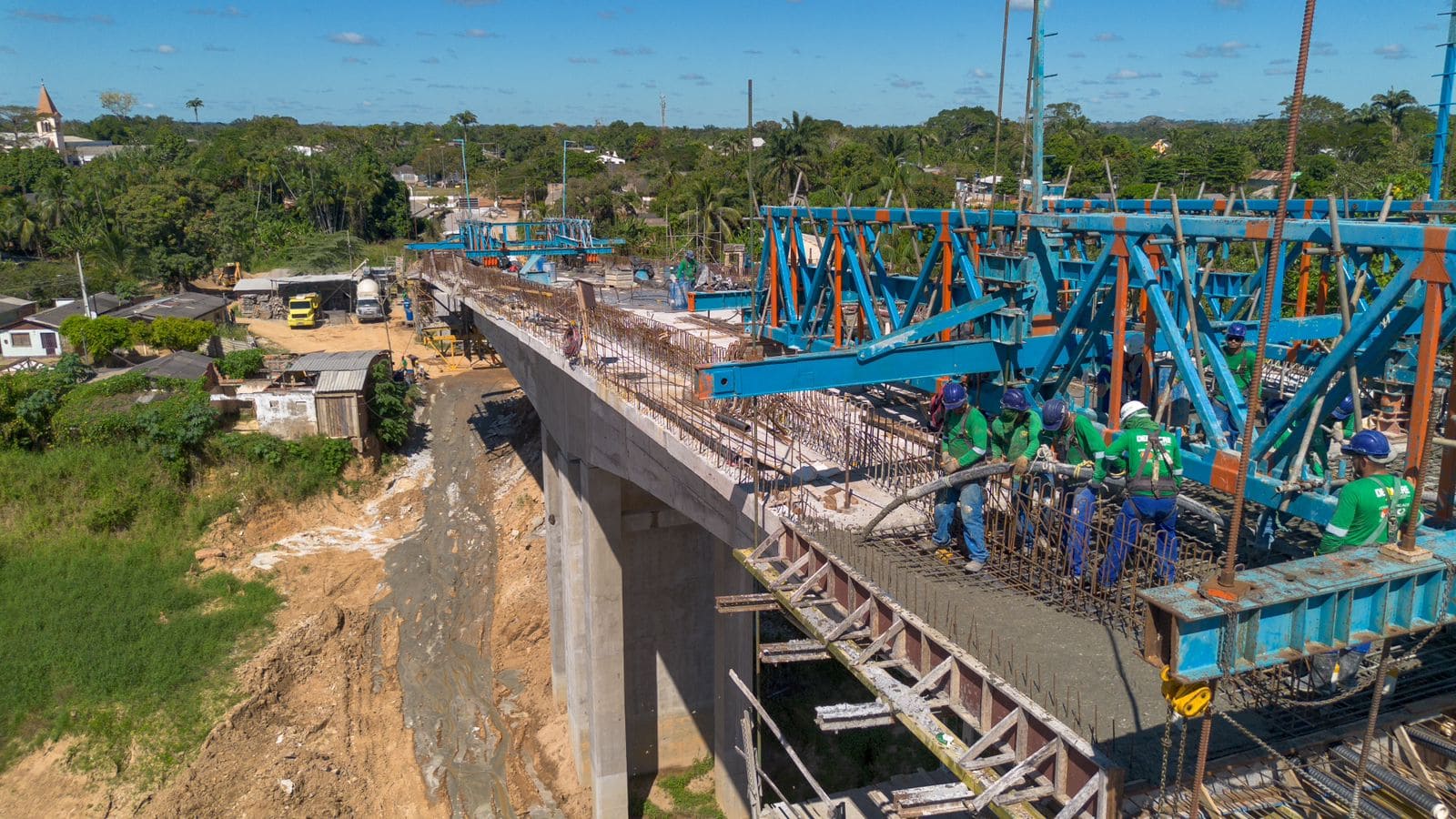 Outro destaque da Operação Verão 2025 é a construção da nova Ponte da Sibéria, também em Xapuri. A obra já alcançou 85% de avanço e está na fase de superestrutura, com a concretagem das aduelas das lajes. Cerca de 70 trabalhadores estão mobilizados no local.