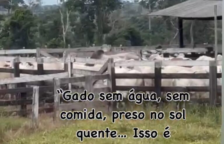 De acordo com a entidade, animais apreendidos em áreas embargadas estariam sendo mantidos em condições precárias. A denúncia é baseada em vídeos, fotos e relatos recebidos pela ONG, que apontam situações como bezerros separados das mães, algumas delas abatidas em frigoríficos, além de bovinos com feridas abertas, infecções e bicheiras, sem atendimento veterinário.
