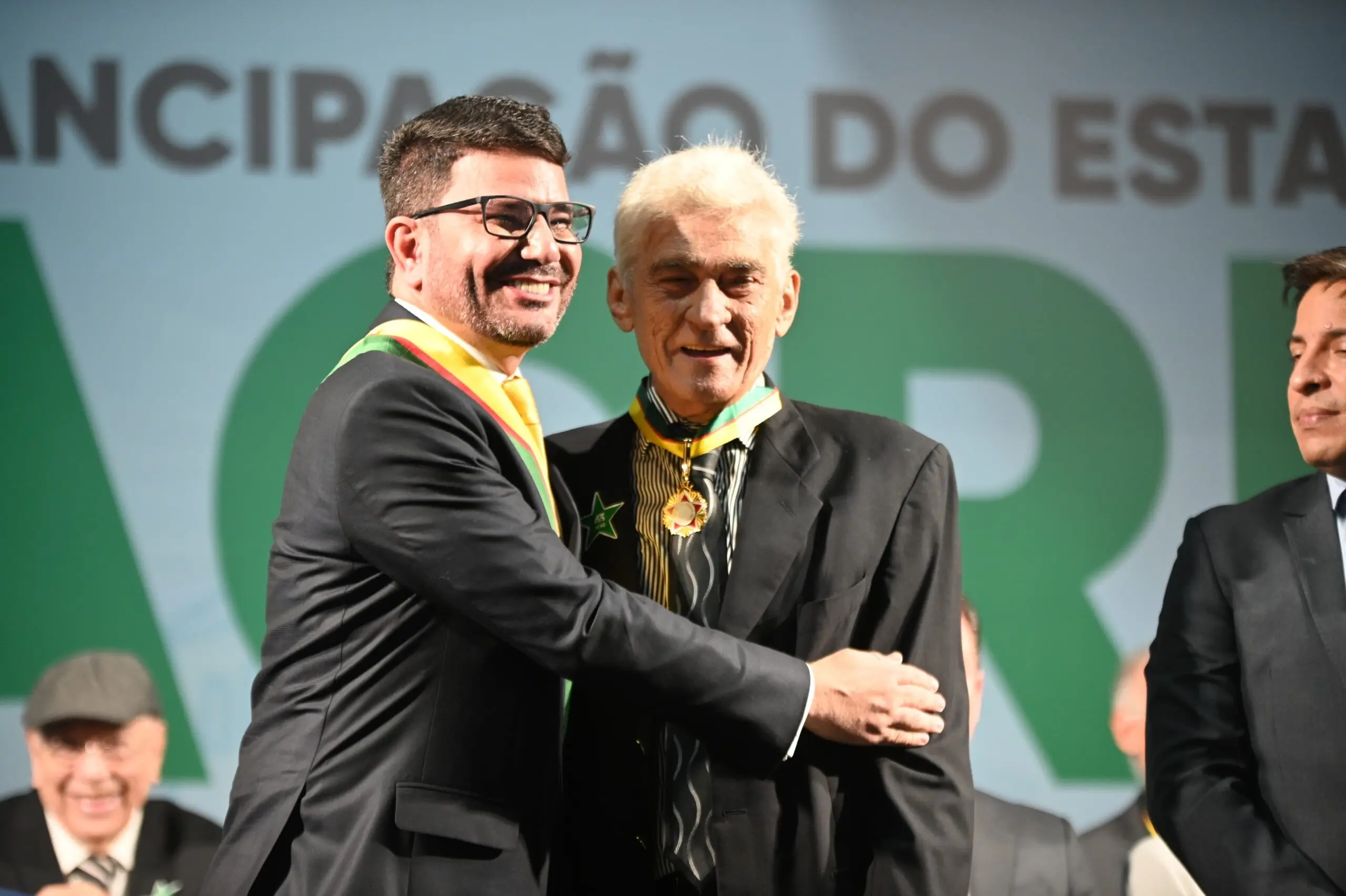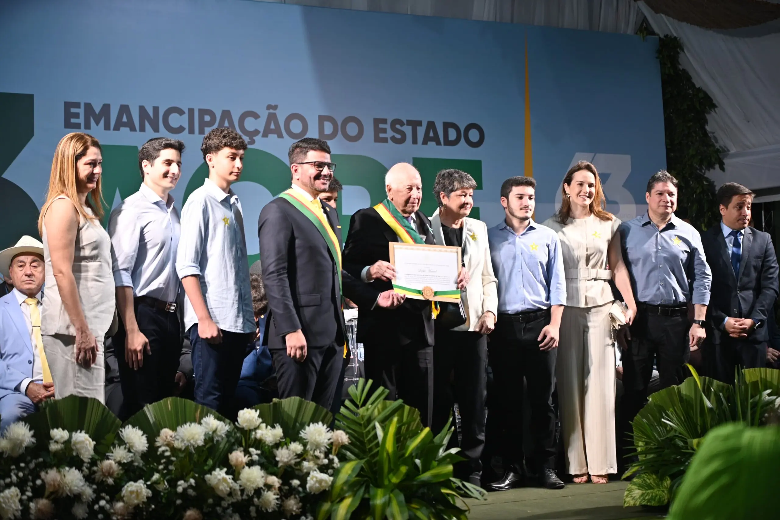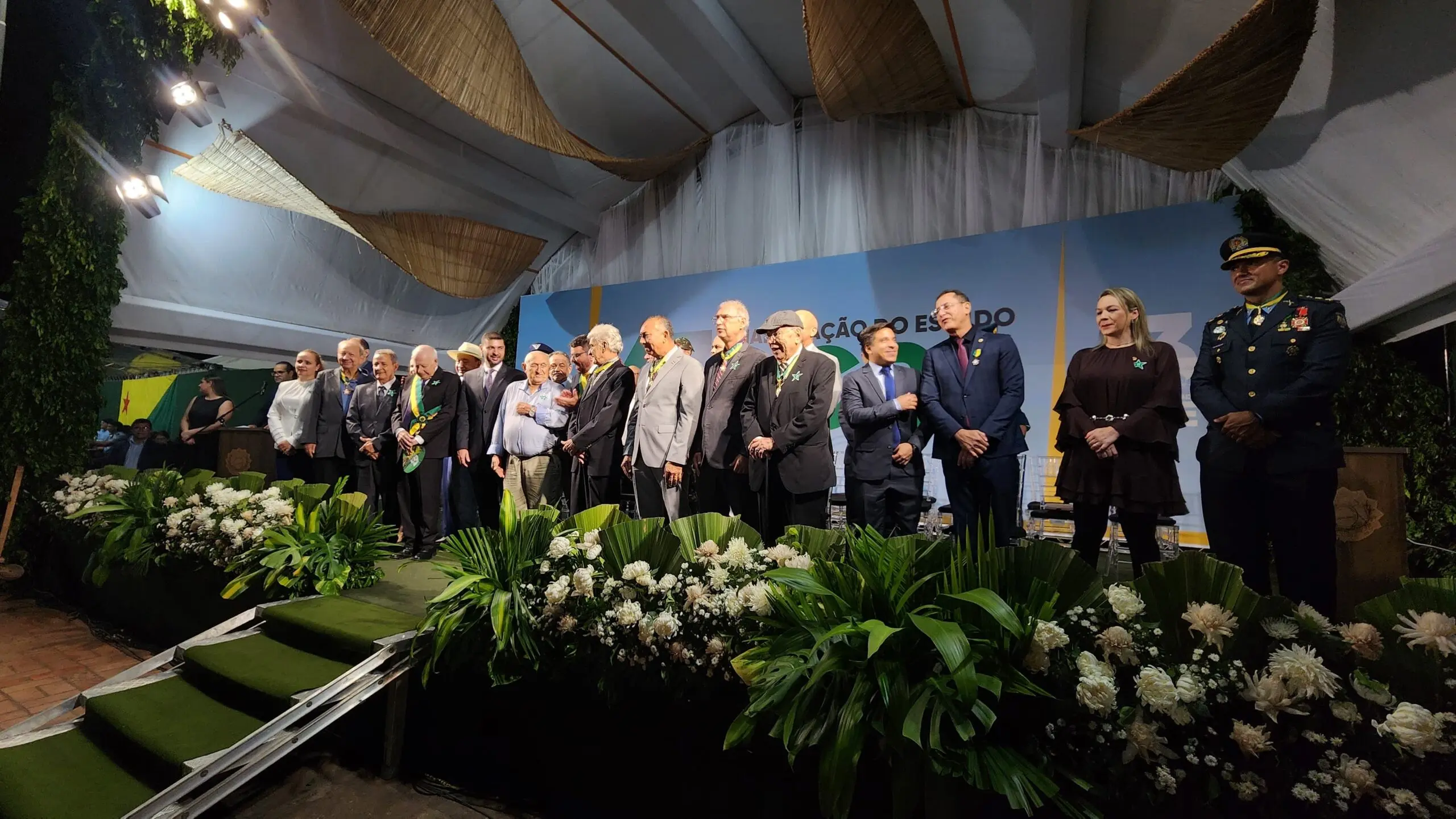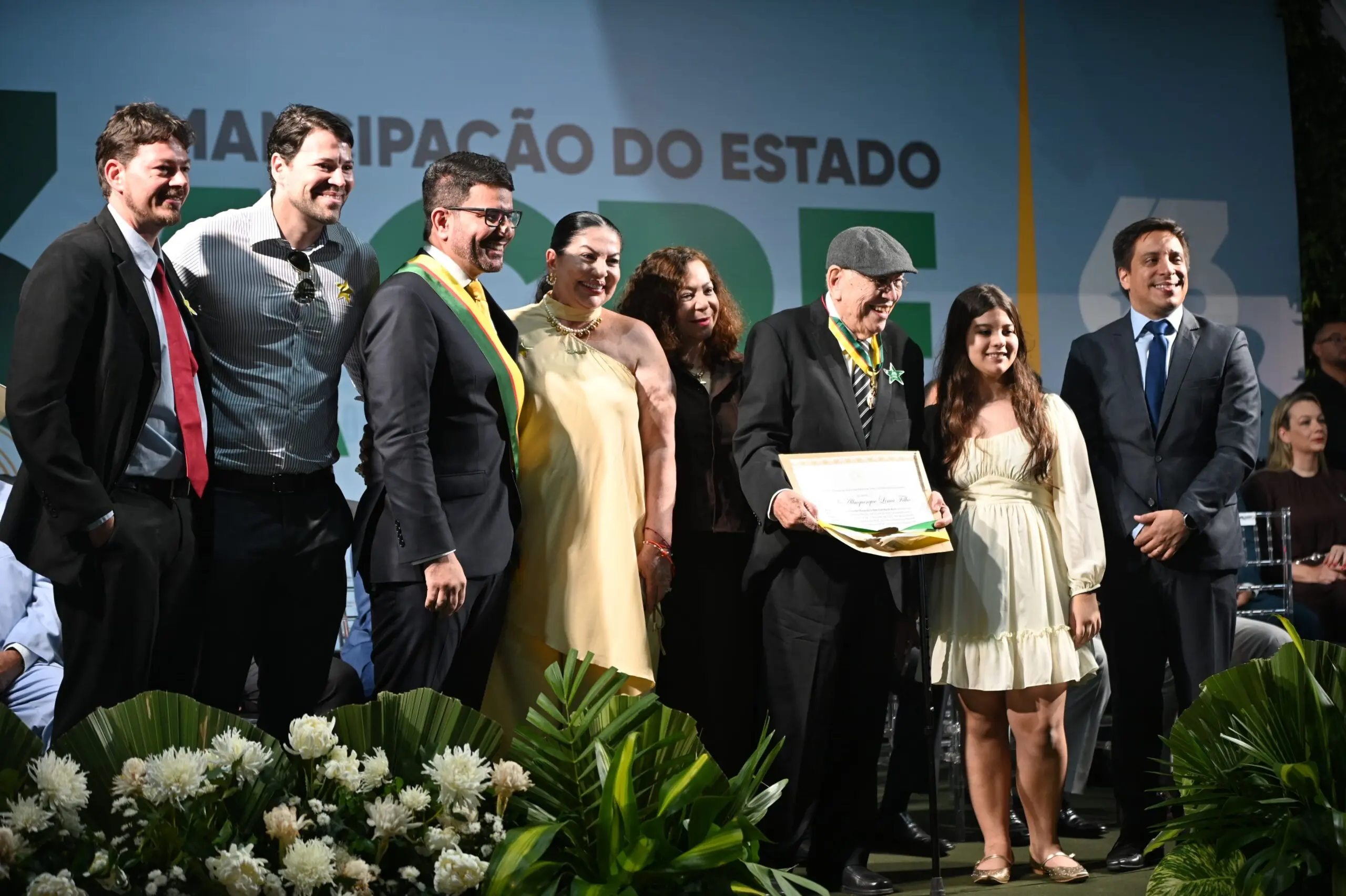 Durante a cerimônia dos 63 anos de emancipação do Estado do Acre, neste domingo (15), no Calçadão da Gameleira, o governador Gladson Camelí, Grão-Mestre da Ordem da Estrela do Acre, concedeu as maiores honrarias do estado a nomes acreanos históricos e importantes.