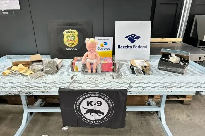 Uma boneca recheada de drogas que seria enviada pelos Correios foi apreendida durante uma operação de fiscalização postal da Polícia Civil de Santa Catarina (PCSC).