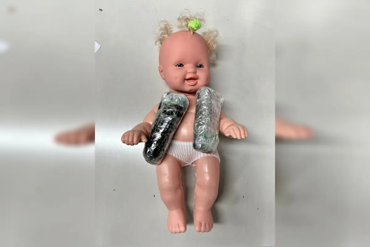 Durante a inspeção, foi confirmado que o interior da boneca estava recheado com haxixe, evidenciando um método de ocultação sofisticado. Em diligências complementares realizadas no mesmo contexto operacional, com apoio da Coordenadoria de Operações com Cães da PCSC, também foram localizadas porções de cocaína e skunk em outras encomendas.