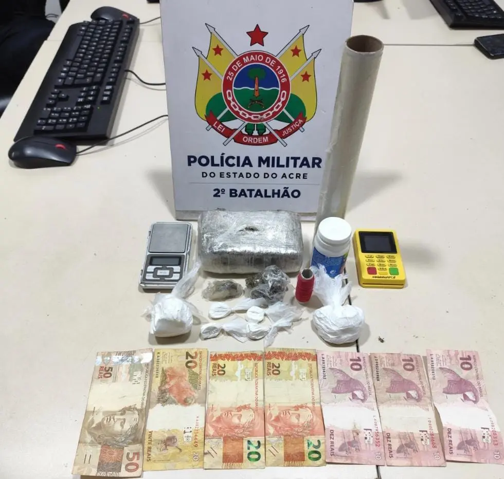 Durante patrulhamento na tarde de sexta-feira (20), policiais militares da Força Tática do 2º Batalhão prenderam um homem suspeito de envolvimento com o tráfico de drogas em uma residência na Rua Boa Esperança, no Ramal da Garapeira, região do bairro Vila Acre, em Rio Branco. A equipe foi até o local após receber denúncia sobre atividade criminosa no imóvel, já conhecido pelas autoridades pela movimentação de usuários.