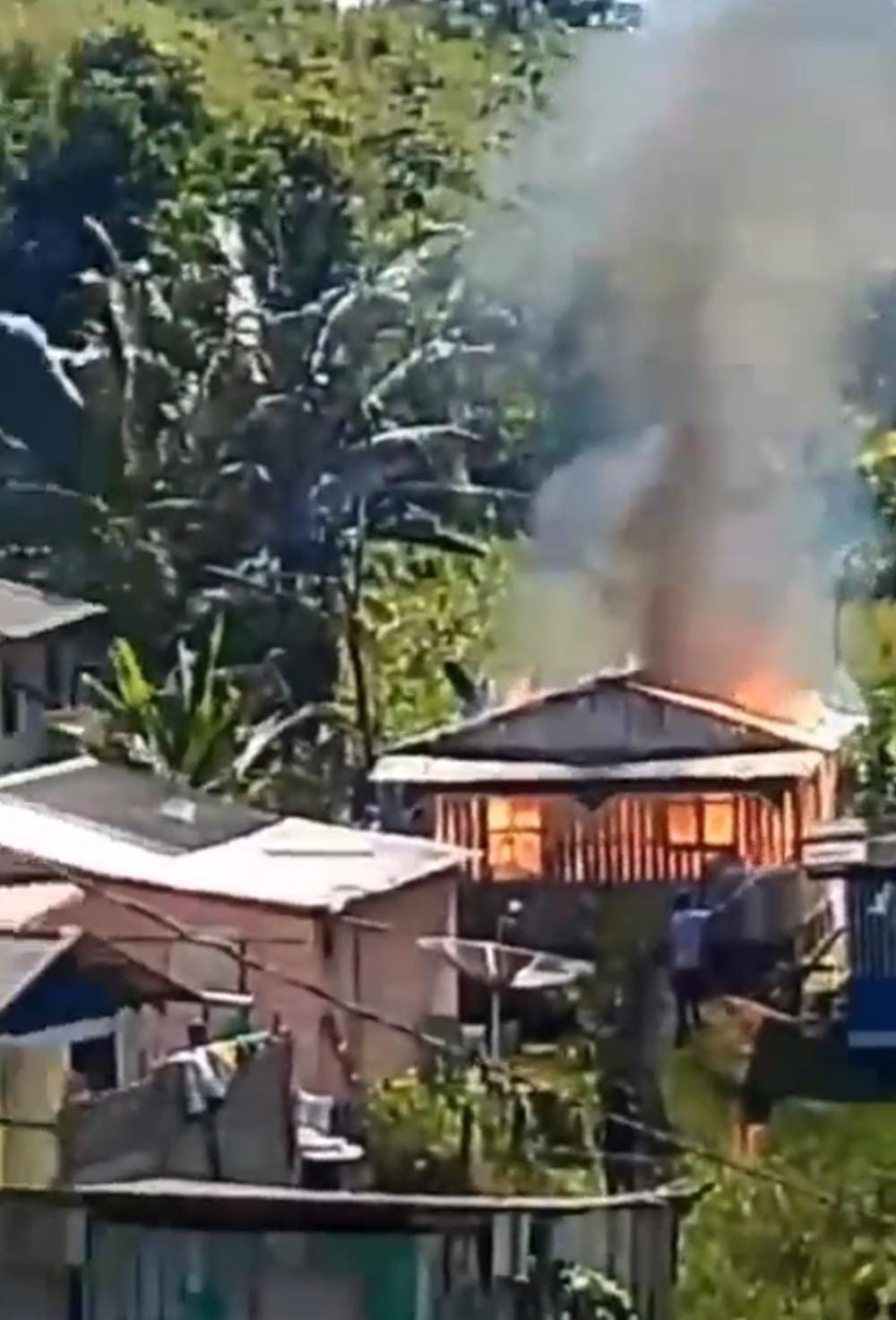 Na imagem, é possível ver as chamas consumindo a casa e um homem teria jogado gasolina e ateado fogo no imóvel, que pertence a uma mulher.