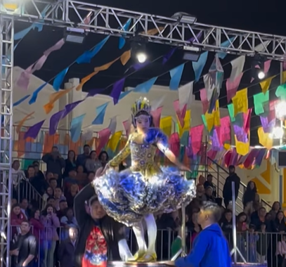 Cinco candidatas representaram suas respectivas juninas com figurinos deslumbrantes, domínio de palco e coreografias que reforçaram a importância da arte como ferramenta de inclusão e respeito. Entre as concorrentes, Luísa Paparazzo, de 18 anos, representou a quadrilha C L na Roça. Estudante e dançarina há 9 anos, Luísa encantou o público com leveza e segurança.