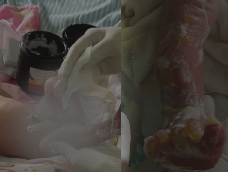 A mulher afirma que após a equipe ser confrontada, informaram que a recém-nascida está com um quadro de uma doença rara chamada Epidemose Bolhosa, que causam bolhas e feridas na pele e mucosas.