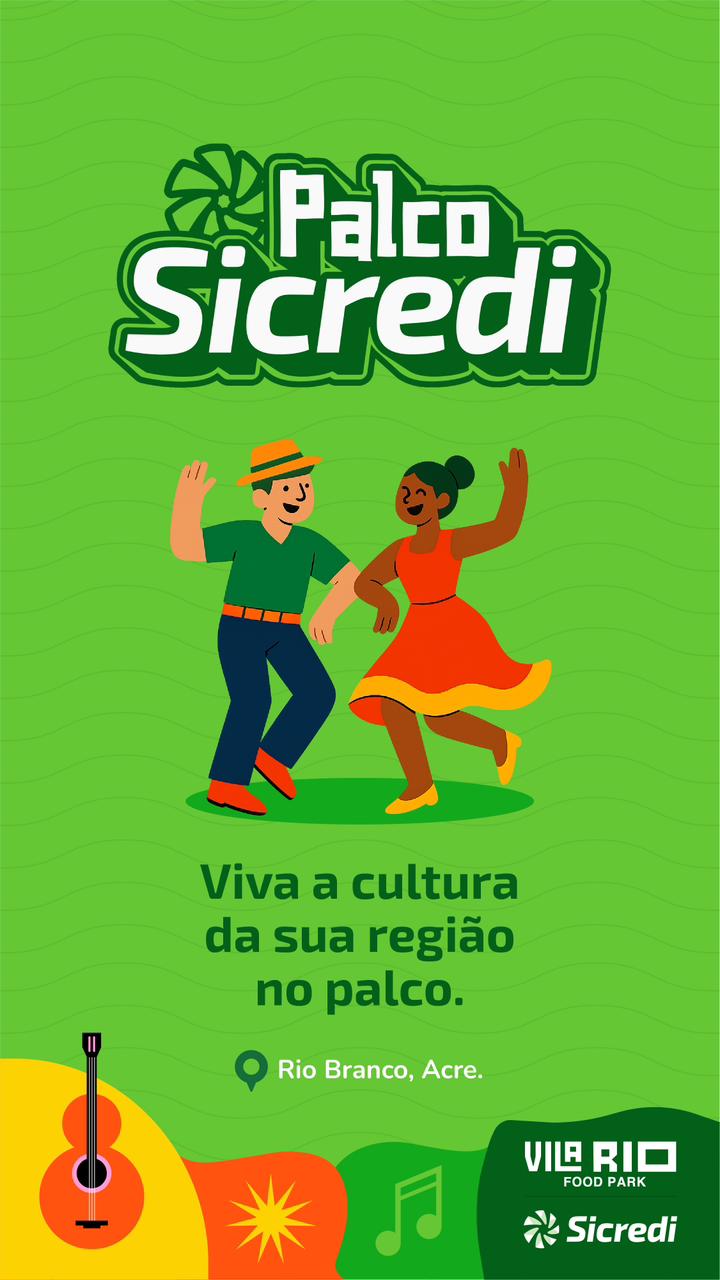 Com um ambiente descontraído o espaço Vila Rio food park, conhecido por reunir lazer e gastronomia, agora também será palco para a arte feita no Acre, idealizado como um ponto de encontro entre músicos e comunidade, o espaço terá uma agenda diversificada de shows, contemplando diferentes gêneros musicais e dando visibilidade a novos talentos. Consolidando o Palco Sicredi como vitrine da cultura no Acre em um formato acessível, acolhedor e gratuito.