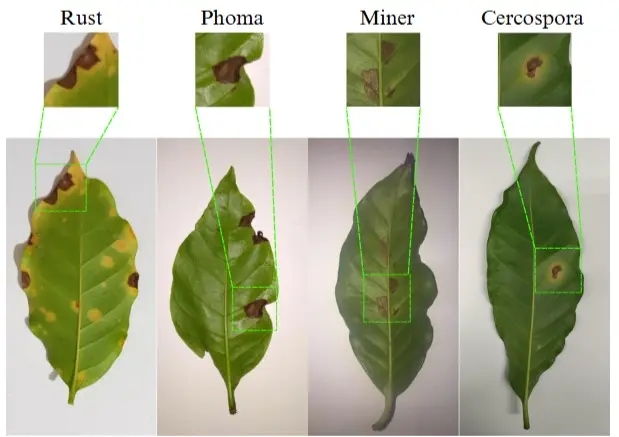 Durante os testes, o sistema foi capaz de identificar quatro doenças comuns no café arábica: ferrugem-do-cafeeiro (Hemileia vastatrix), bicho mineiro (Leucoptera coffeella), phoma (Phoma costarricensis) e cercosporiose (Cercospora coffeicola). “Cada doença tem características próprias, mas muitas são parecidas entre si. O modelo teve que aprender detalhes como formato, cor e posição das manchas para diferenciá-las corretamente”, explicou Clécio.