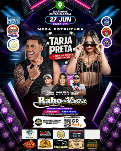 No próximo dia 27 de junho, a partir das 21h, o Estádio de Epitaciolândia será palco de um verdadeiro espetáculo de música e diversão com a super produção da Festa Tarja Preta .A festa que o médico não recomenda!