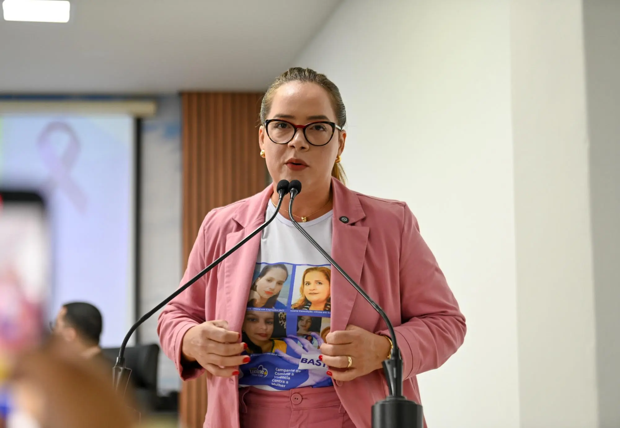 Durante discurso no pequeno expediente da Câmara Municipal de Rio Branco, nesta terça-feira (17), a vereadora Lucilene Vale fez um pronunciamento contra a crescente violência praticada contra mulheres no Acre. Vestindo uma blusa em homenagem a vítimas de feminicídio, ela lamentou os recentes casos registrados no estado e destacou a urgência de ações efetivas para enfrentar o problema.