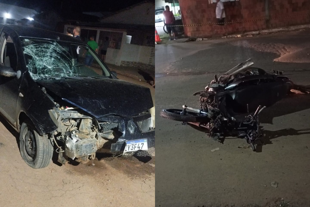 O carro preto acertou uma mulher que dirigia uma motocicleta e foi arremessada em via pública. De acordo com informações, a mulher será transferida para um hospital na capital acreana, para cuidar de uma fratura na perna, causada pelo impacto.