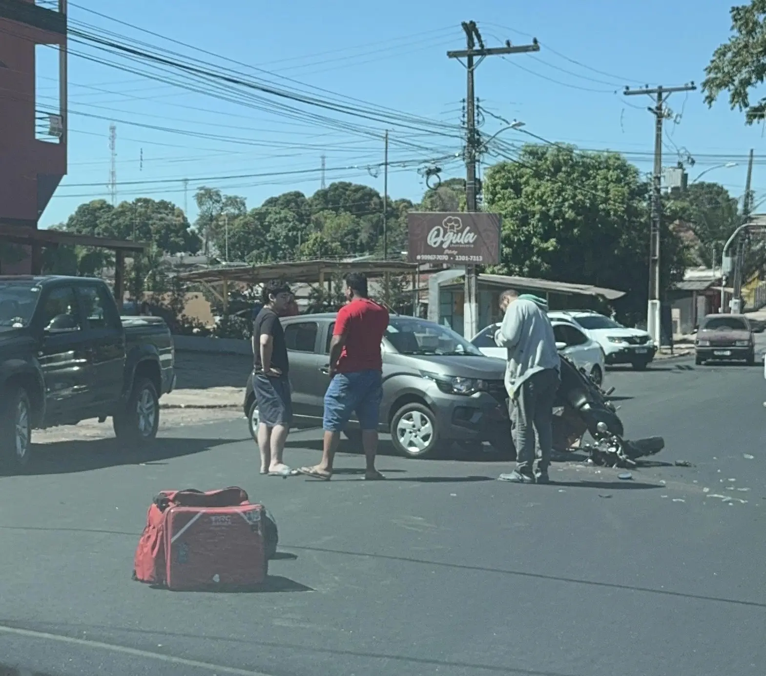 Um acidente entre um carro de passeio e uma motocicleta deixou os dois veículos parcialmente destruídos na tarde deste domingo (20), na rua Rio se Janeiro, próximo ao Arasuper, em Rio Branco. O motociclista, que é entregador por aplicativo, teve apenas ferimentos leves.