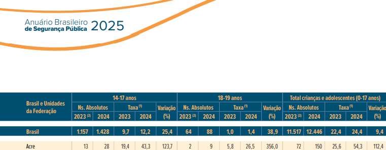 Os dados do Anuário levam em conta números disponibilizados pela Secretaria Estadual de Segurança Pública, Polícia Civil do Estado do Acre e o Instituto Brasileiro de Geografia e Estatística (IBGE).