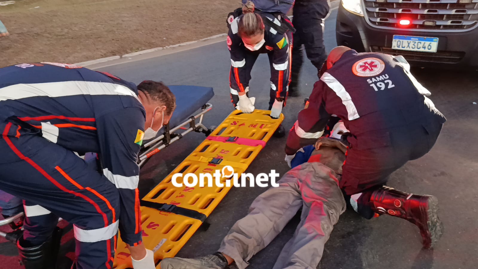 Equipe do Samu presta os primeiros socorros ao adolescente, vítima de atropelamento na tarde desta segunda-feira/Foto: ContilNet