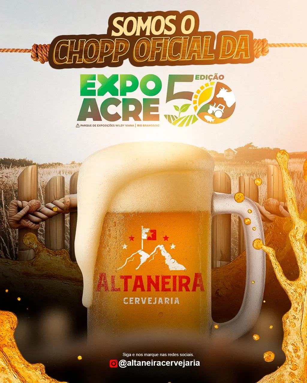 A Cervejaria Altaneira marca presença na edição especial dos 50 anos da Expoacre como chopp oficial da maior feira de exposição e agronegócio do Acre. Com produção 100% local, a marca chega trazendo uma grande novidade para o público: uma nova fórmula que torna a bebida ainda mai leve e refrescante, ideal para acompanhar as noites de evento.
