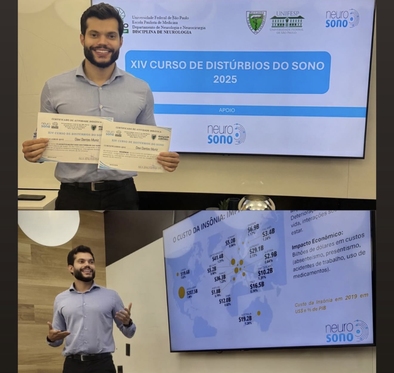 O renomado médico acreano, Davi Muniz, Neurologista e Neurofisiologista Clínico, pós-graduado em Neuroligia, Neurociências, participou do XIV Curso de Distúrbios do Sono 2025 – disciplina de Neurologia da EPM – UNIFESP e apresentou aula sobre a insônia e classificação dos distúrbios do sono.
