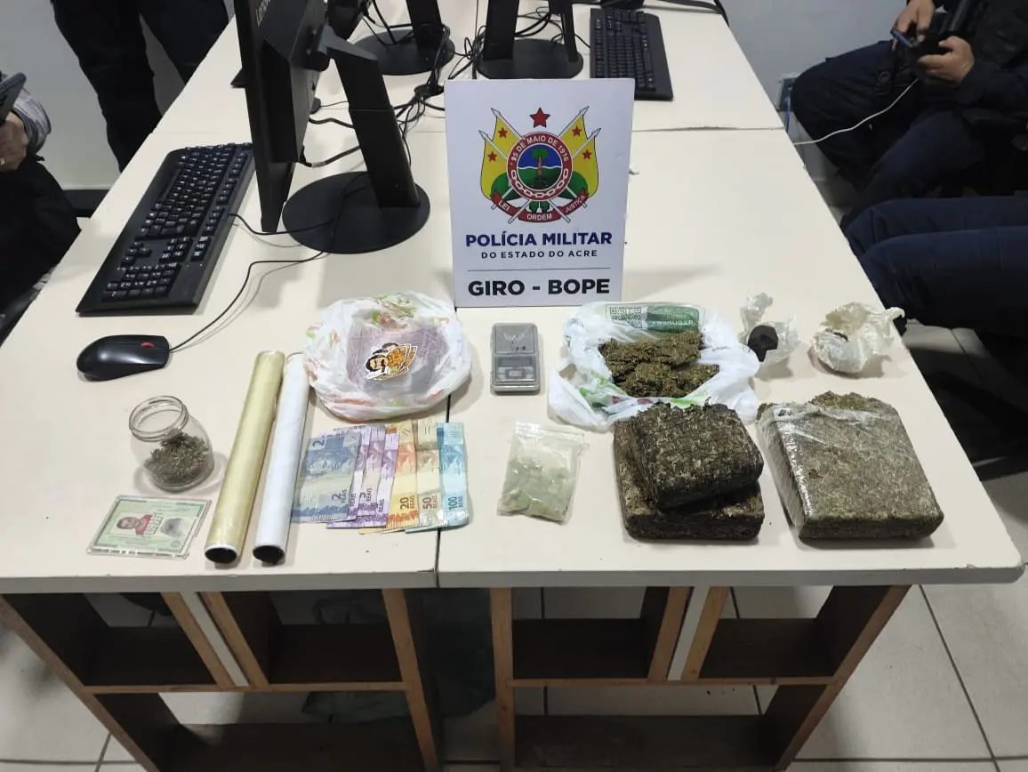 O suspeito, juntamente com os entorpecentes e os demais itens apreendidos, foi conduzido à Delegacia de Flagrantes (Defla), onde o caso será investigado e as medidas legais serão adotadas. A ação é mais uma resposta da Polícia Militar ao combate ao tráfico de drogas na capital acreana. Participe do nosso canal no WhatsApp e fique por dentro das notícias.