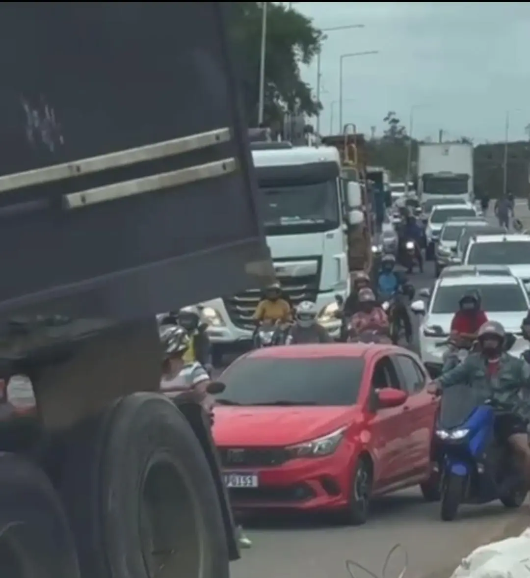 O incidente causou lentidão no tráfego por vários minutos, até que o motorista conseguiu manobrar e retirar o caminhão da via. Após a liberação, o fluxo de veículos voltou ao normal.