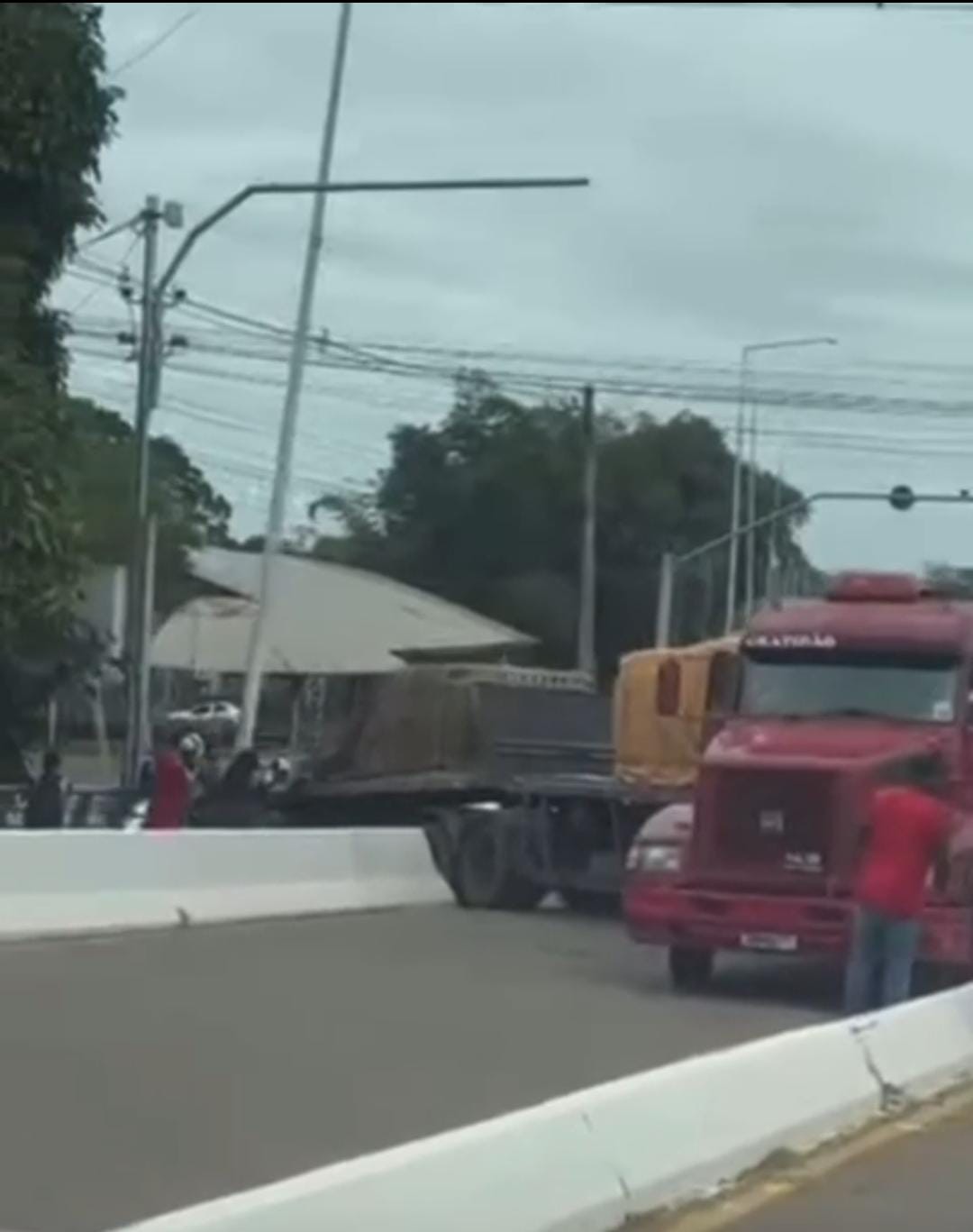 O incidente causou lentidão no tráfego por vários minutos, até que o motorista conseguiu manobrar e retirar o caminhão da via. Após a liberação, o fluxo de veículos voltou ao normal.