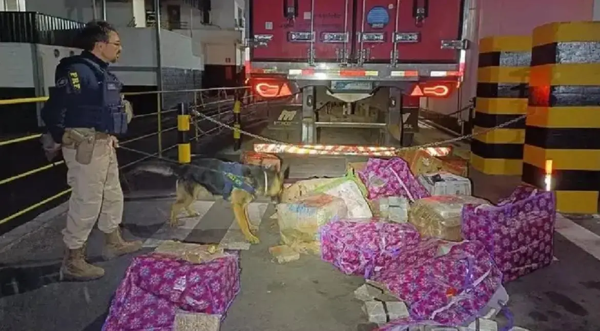 O caminhão, que havia saído de Rio Branco (AC) com destino oficial ao Espírito Santo, foi parado após a PRF identificar suspeitas durante uma análise de risco. A vistoria revelou indícios de violação no lacre do compartimento de carga. Com o apoio de cães farejadores, os agentes confirmaram a presença dos entorpecentes.