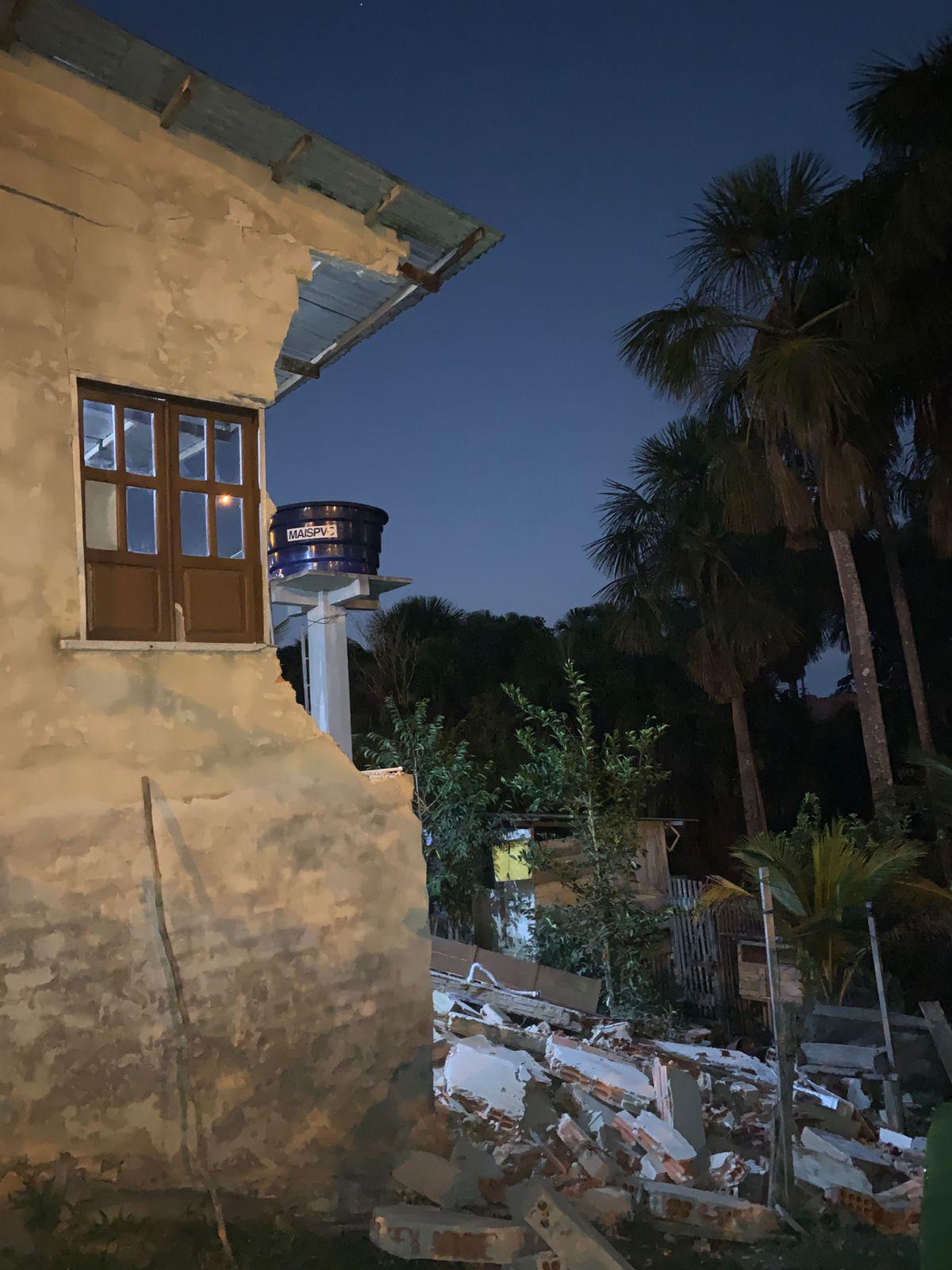 O deslizamento de uma massa de terra atingiu a fundação da casa, causando o desabamento de parte da estrutura. A cozinha, o banheiro e um dos quartos foram totalmente comprometidos. Felizmente, não houve vítimas, já que todos os ocupantes haviam optado por dormir na área externa da residência, considerada pela família como a zona mais segura.