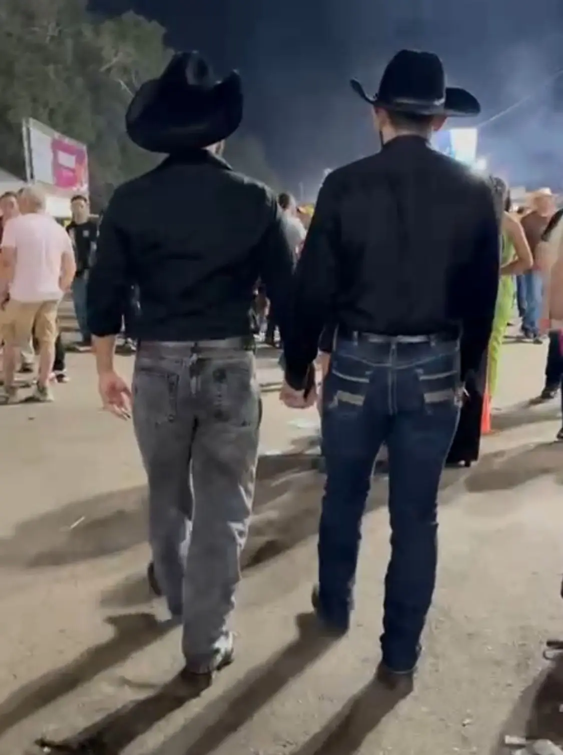 Dois peões chamaram atenção durante a Expoacre 2025, ao desfilarem de mãos dadas pela feira. Vestindo camisas sociais pretas, calças jeans, botas e chapéus, os dois homens exibiram trajes típicos de cowboy em meio ao público que circulava pelas ruas da feira.