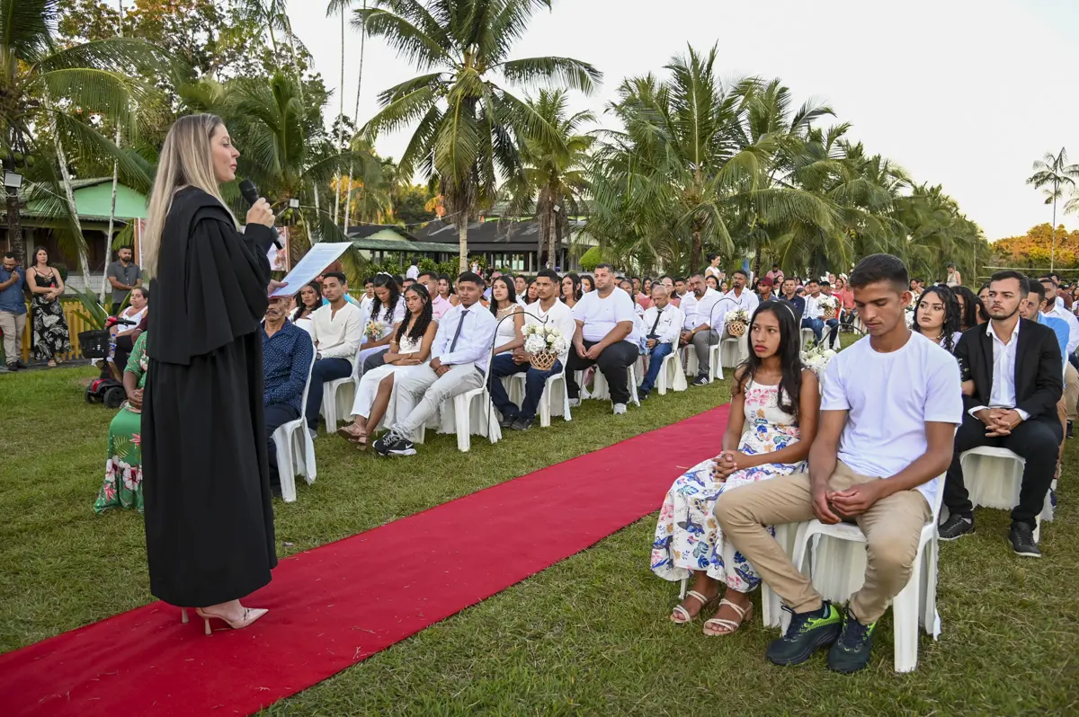 O fim da tarde do último domingo (20) foi marcado por um momento marcante em Mâncio Lima, ocasião em que 80 casais oficializaram a união em uma cerimônia de casamento coletivo realizada no Balneário Bethânia, por meio do Projeto Cidadão.