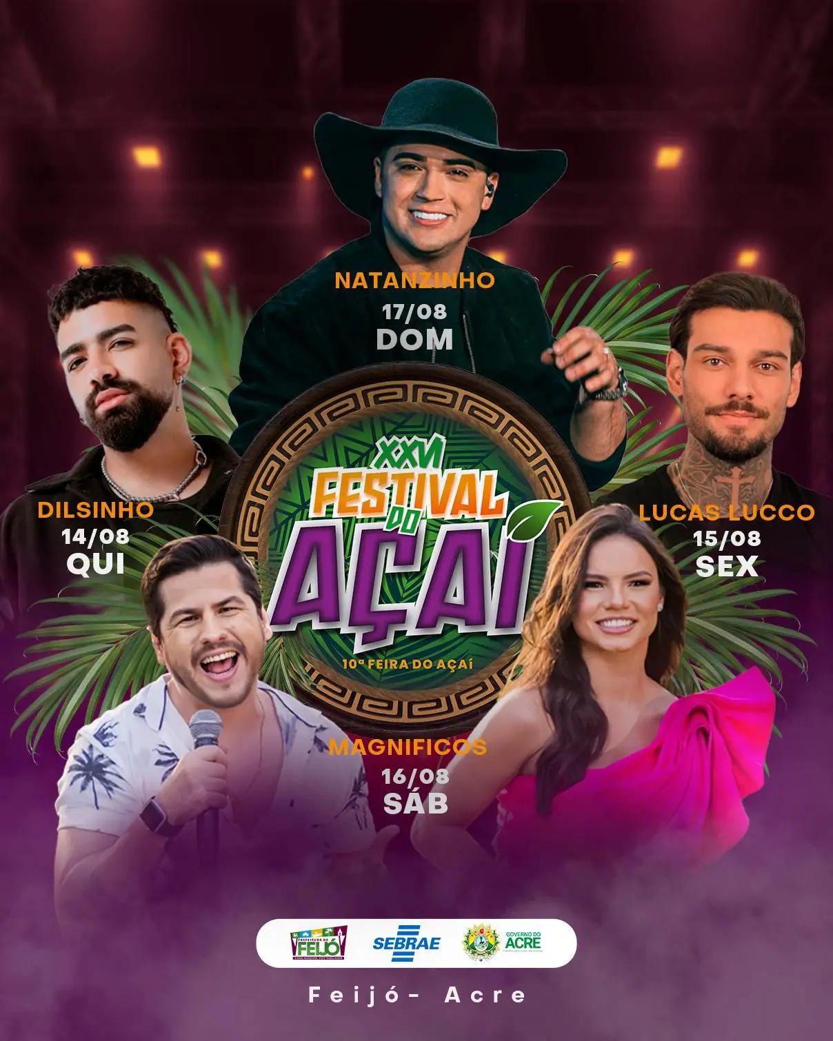 De 14 a 17 de agosto, o município de Feijó será palco de um dos eventos mais aguardados do estado: o Festival do Açaí e o Festival de Praia. Realizados simultaneamente, os festivais prometem atrair milhares de visitantes de diversas regiões e estados, movimentando a economia local e proporcionando lazer para toda a família.