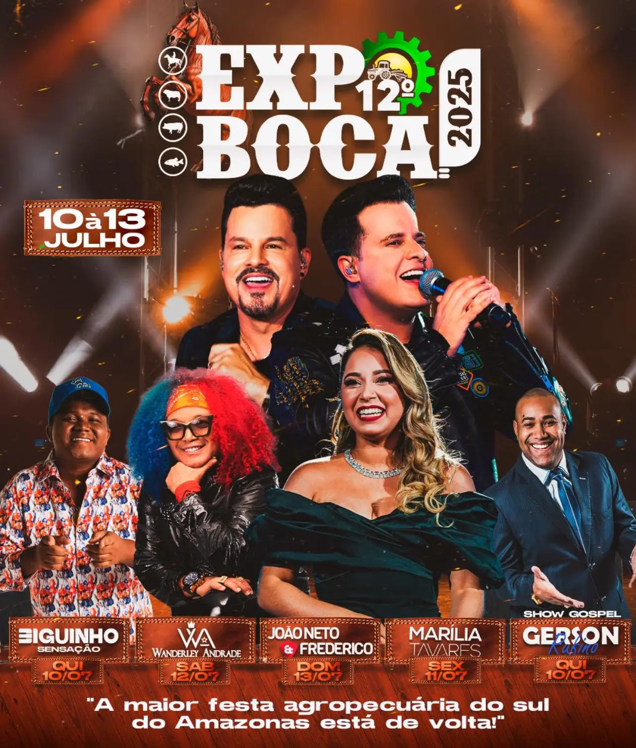 Além dos shows, o público poderá aproveitar rodeios emocionantes, leilões, exposições agropecuárias, apresentações locais e muito mais.