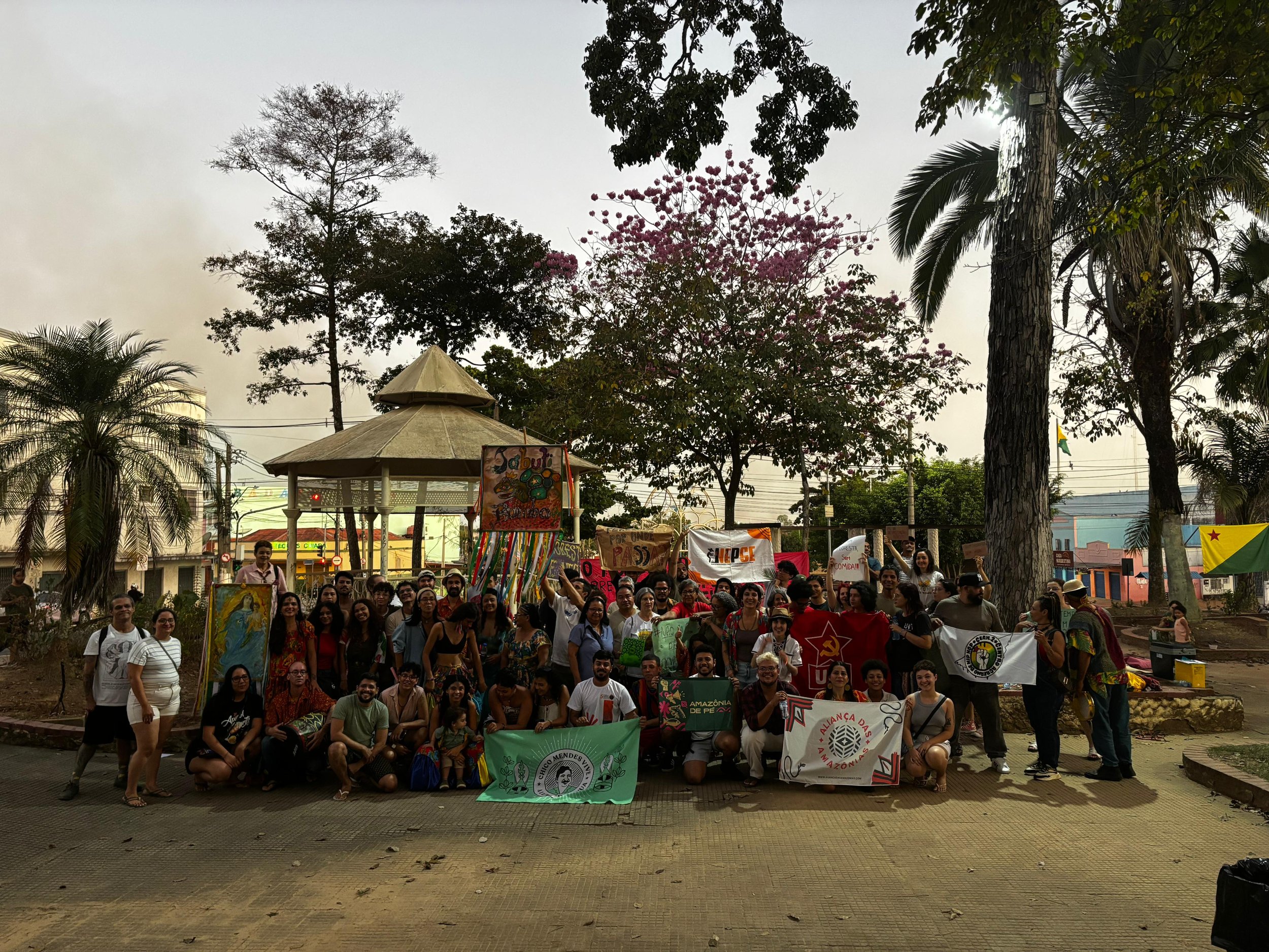 O Comitê Chico Mendes promoveu no domingo (13), na Praça Povos da Floresta, em Rio Branco, um ato público contra o Projeto de Lei 2159/2021, conhecido por críticos como “PL da Devastação”. A atividade foi realizada em parceria com o Nepse (Núcleo de Estudos, Extensão e Pesquisa Psicossocial Euclides Fernandes Távora) e o coletivo Megafone Ativismo.