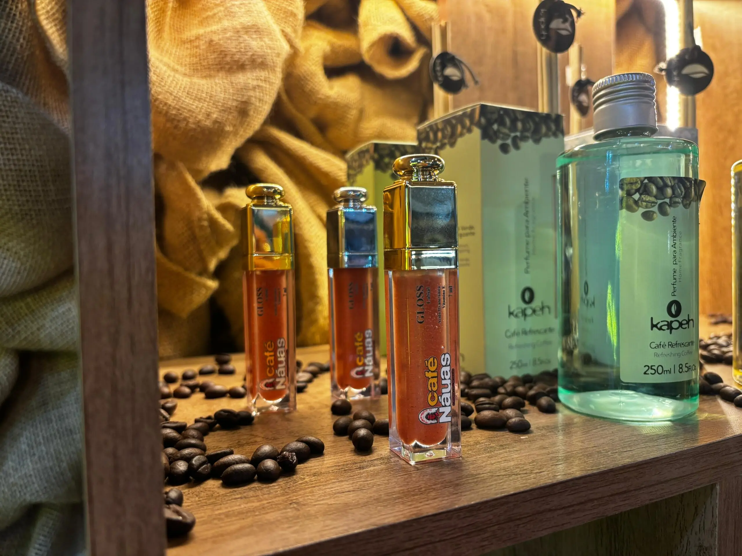 O grande destaque, no entanto, é o lançamento do Gloss do Café Nauas, um gloss labial com sabor e aroma do tradicional cafezinho.
