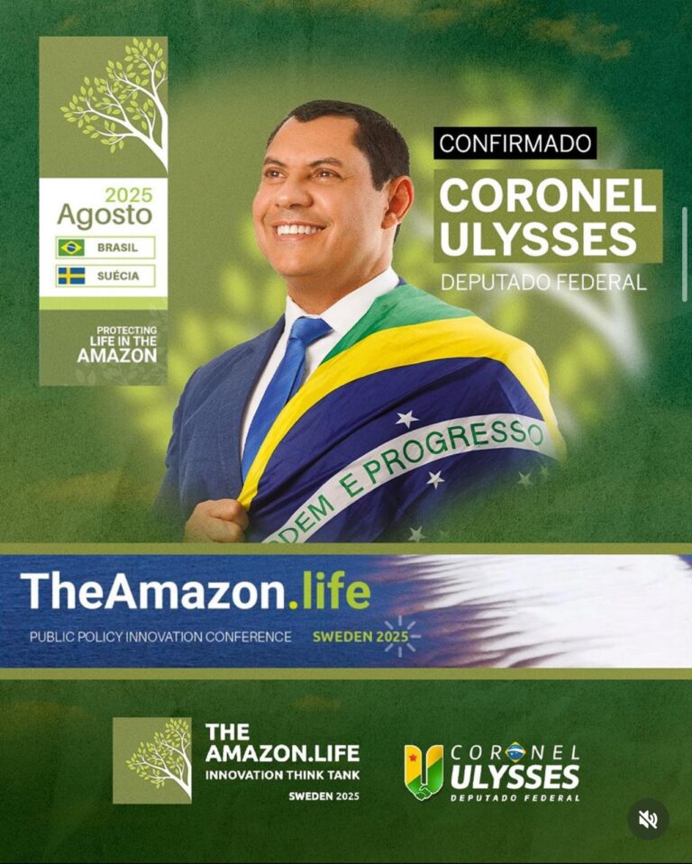 O deputado federal Coronel Ulysses (União Brasil-AC) foi confirmado como representante brasileiro na The Amazon. Life — Public Policy Innovation Conference, evento internacional que acontece em agosto de 2025, na Suécia, com foco em soluções para os desafios da região amazônica.