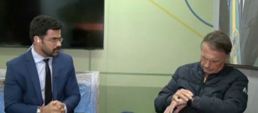 Portanto, o jornalista afirmou, ao vivo, que precisaria finalizar o papo com Bolsonaro antes das 17h, conforme pedido da assessoria do ex-presidente devido a determinação da Justiça.