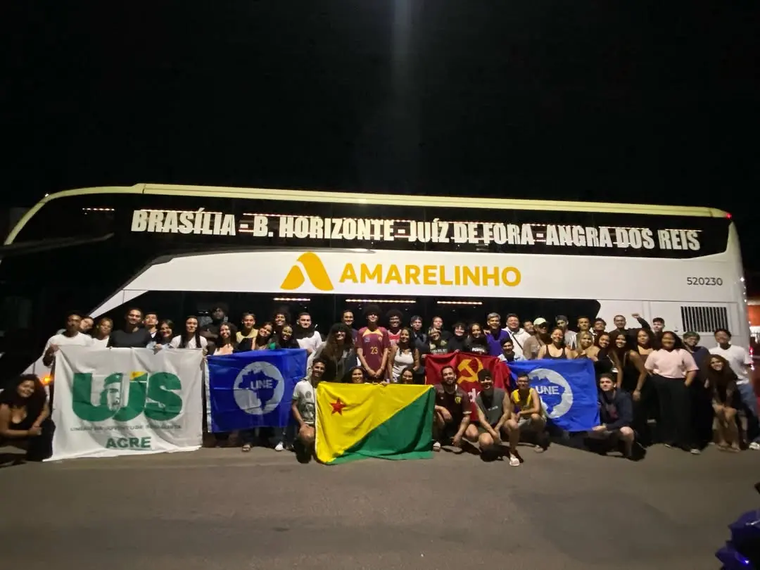 Com três ônibus lotados de universitários, a delegação acreana se une a cerca de 15 mil estudantes de todo o país / Foto: Redes Sociais