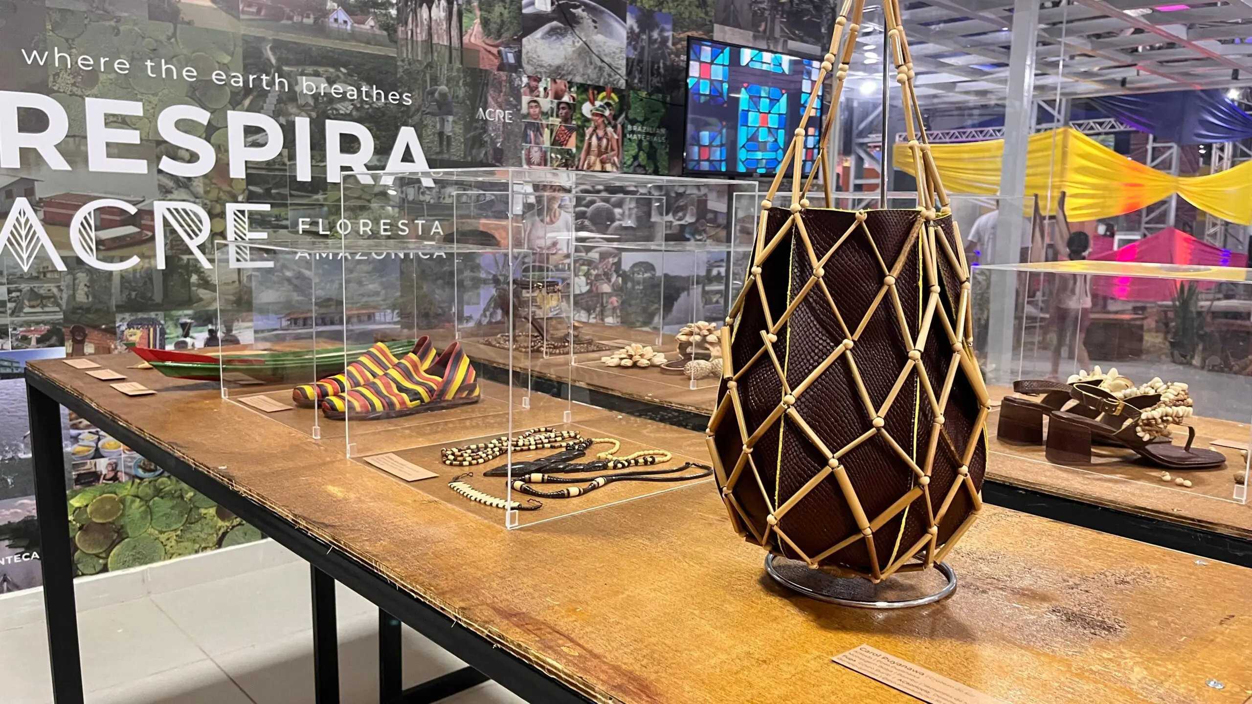 Espaço Respira Acre encanta visitantes com peças criadas a partir de biomateriais da Amazônia no estande do Sebrae/Foto: ContilNet