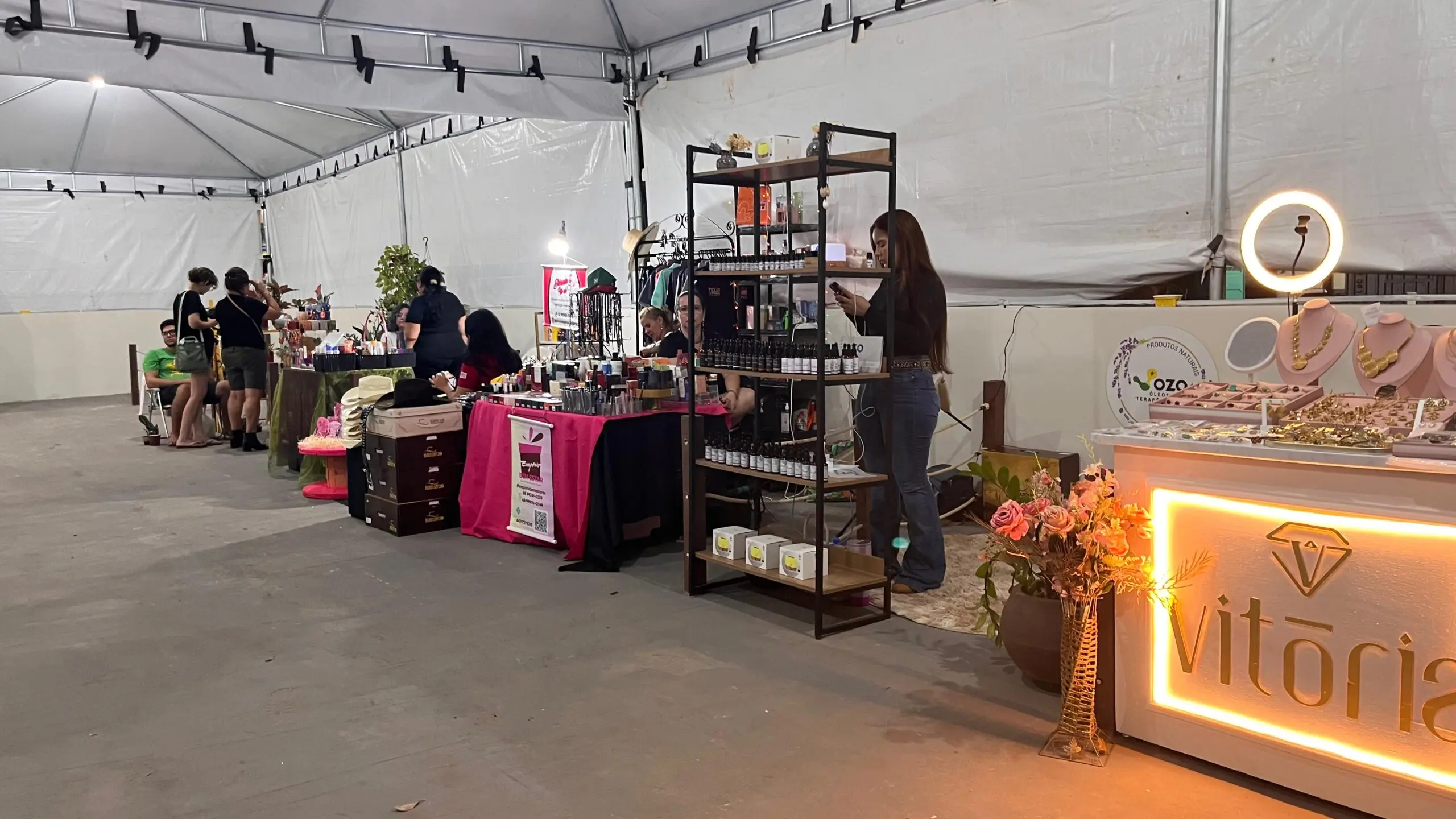 O estande funciona como um ponto de encontro para negócios liderados por mulheres, apresentando ao público uma diversidade de produtos que vai do artesanato local às roupas, acessórios e alimentos regionais. A proposta é dar visibilidade ao trabalho feminino, fomentar parcerias e impulsionar a geração de renda entre as participantes.