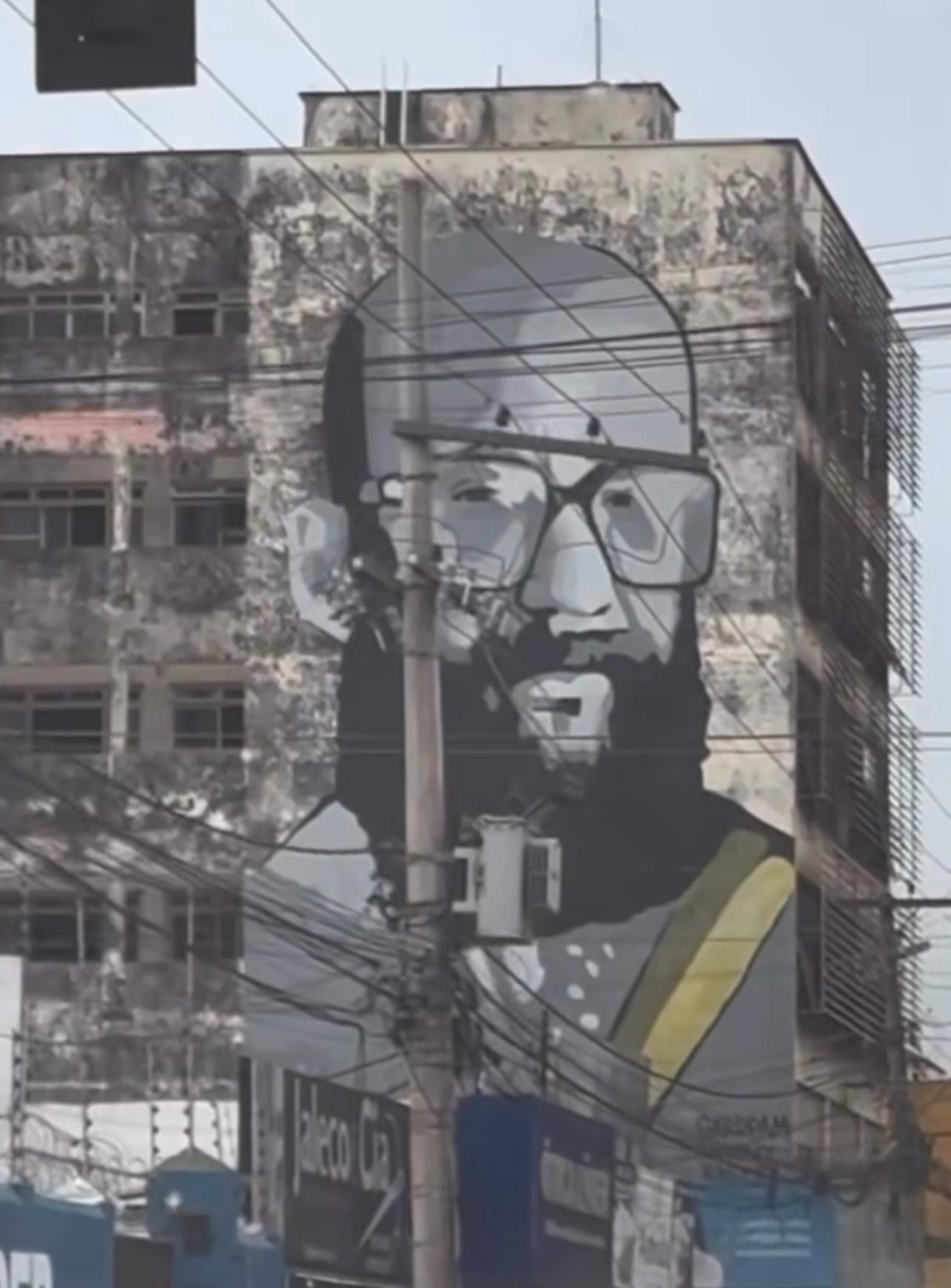 Um mural de grandes proporções com a imagem do político acreano Enéas Carneiro foi finalizado nesta semana em uma das paredes da Avenida Getúlio Vargas, uma das mais importantes vias de Rio Branco. A arte urbana homenageia o médico e ex-deputado federal nascido na capital do Acre e que se tornou conhecido em todo o Brasil nas décadas de 1990 e 2000.