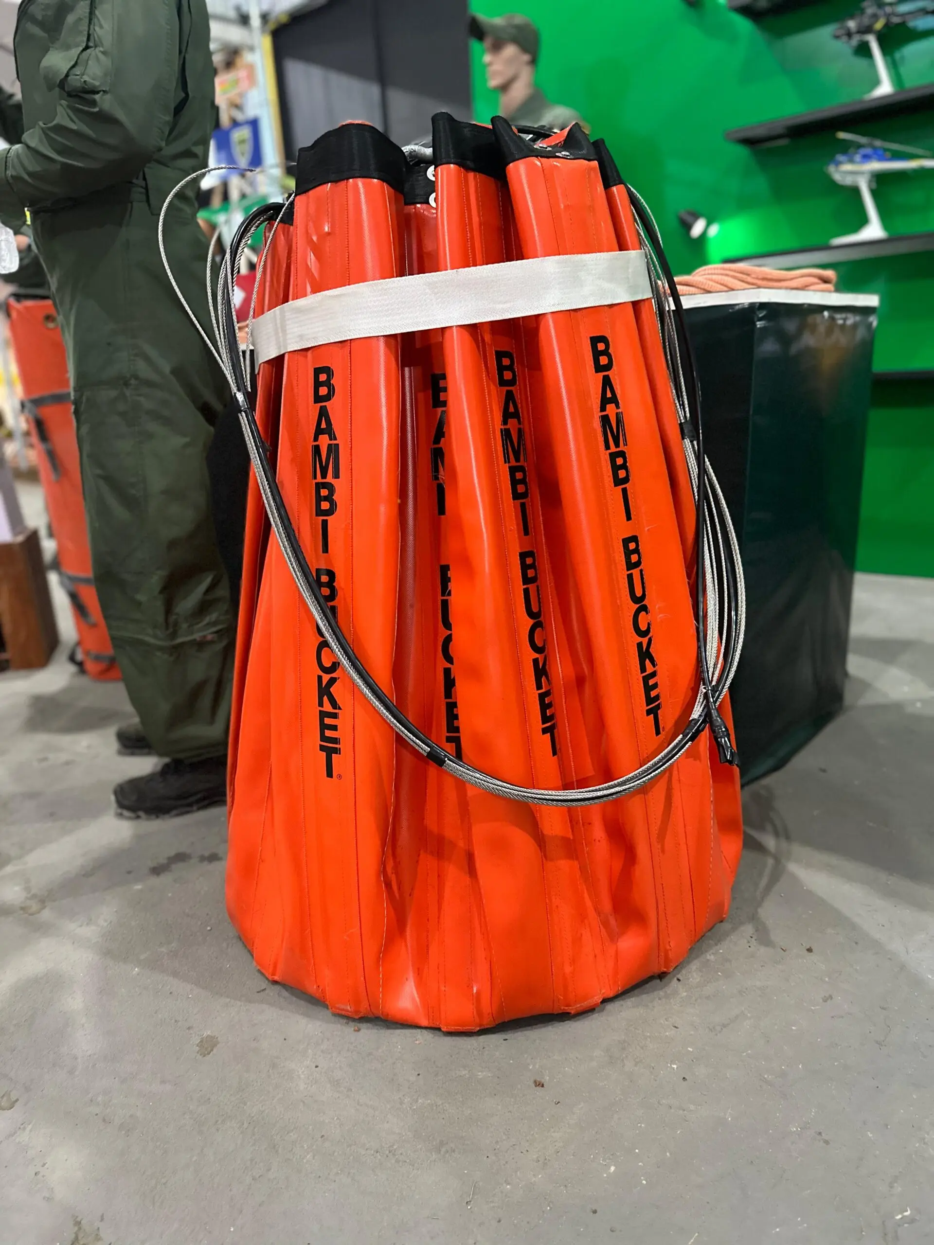 Segundo o comandante, o Bambi Bucket é um sistema acoplado a helicópteros, capaz de transportar e despejar grandes volumes de água diretamente sobre focos de incêndio. “Já estamos utilizando o equipamento na região. Ele é enganchado no helicóptero e, durante o voo, sobrevoamos o foco com velocidade reduzida e despejamos a água com precisão”, explicou. O dispositivo possui capacidade ajustável, podendo carregar 500 ou até 850 litros de água, dependendo da necessidade da operação.