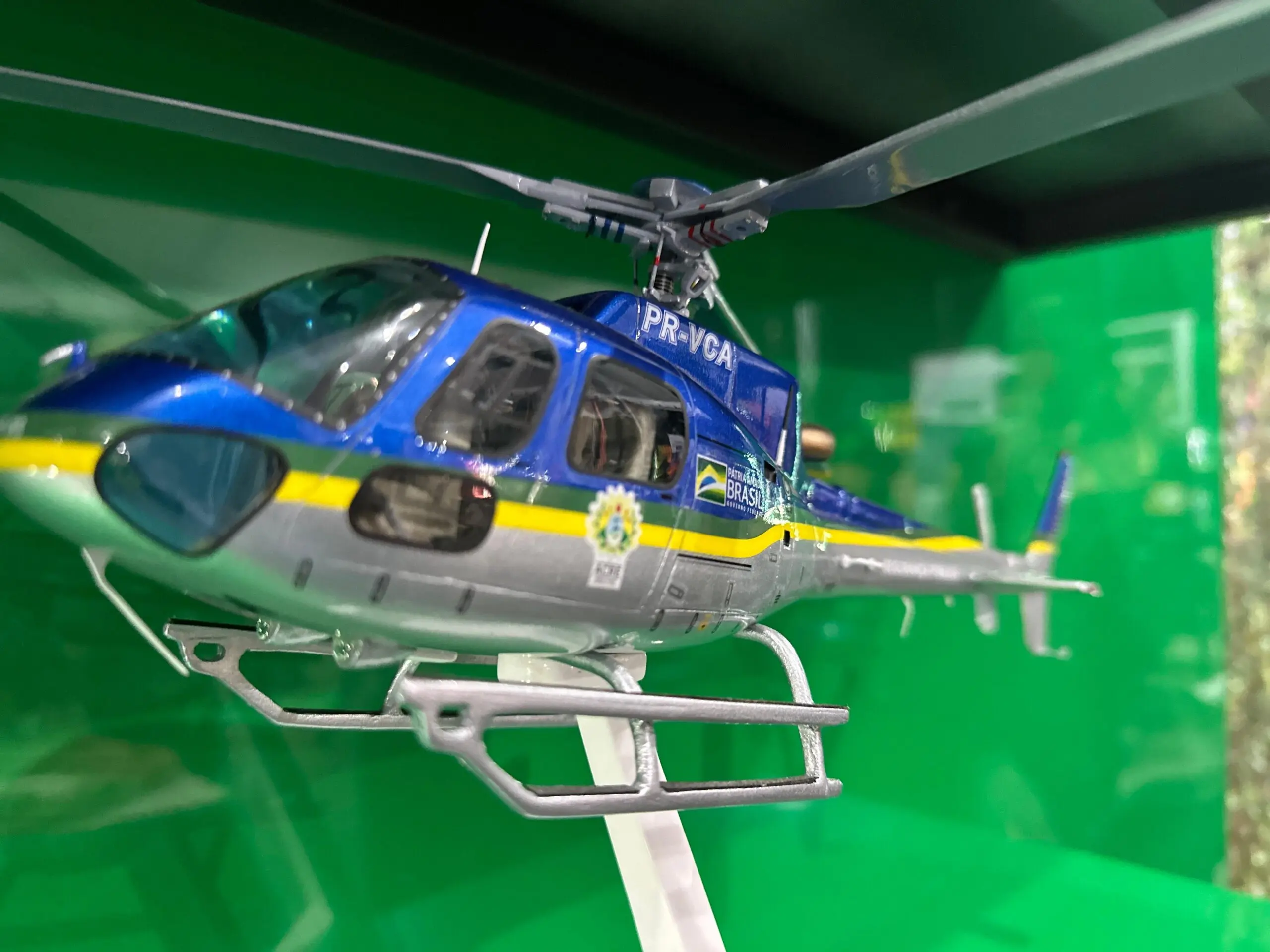 Além do sistema de combate a incêndios, o helicóptero também está equipado com um moderno feixe de luz de busca noturna, utilizado para apoio em operações de resgate e patrulhamento. “Esse dispositivo permite uma variação no foco de iluminação, podendo abranger uma área mais ampla ou mais concentrada, de acordo com a necessidade da missão”, explicou o comandante.