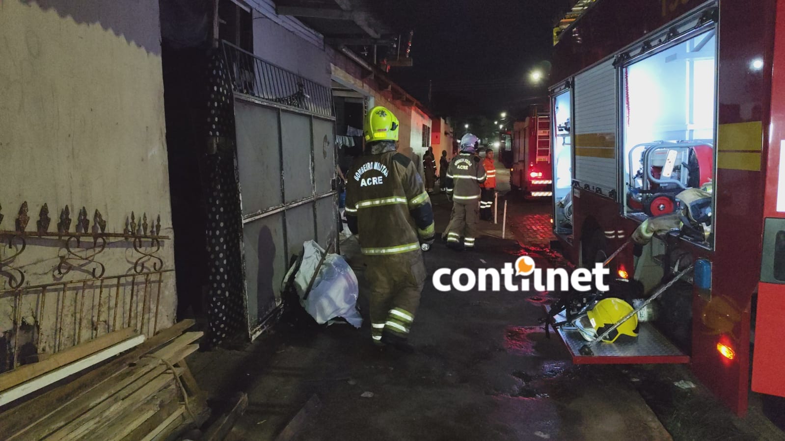 Incêndio em residência no bairro Bosque mobiliza moradores e Corpo de Bombeiros em Rio Branco. Foto: ContilNet