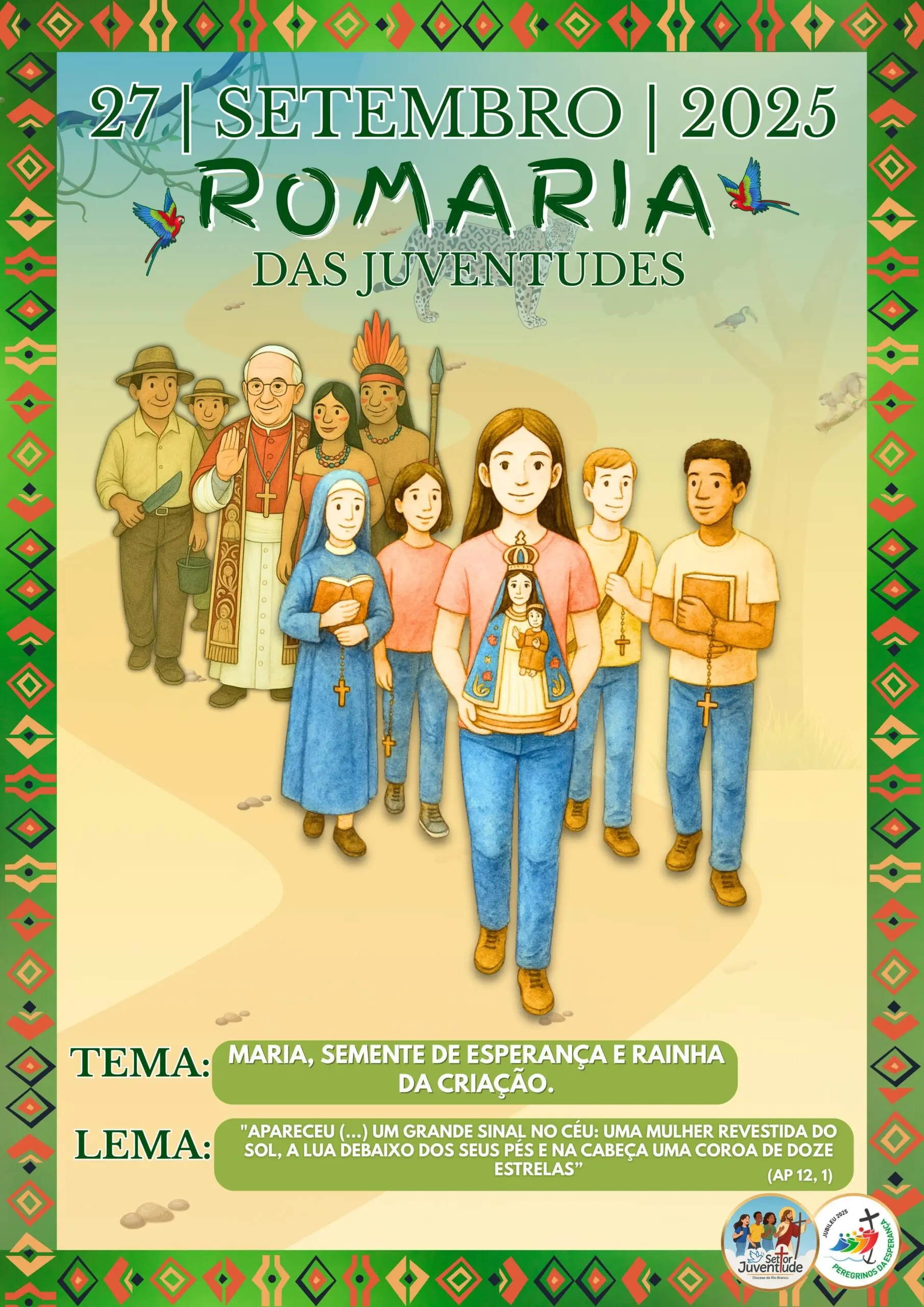 “A juventude da nossa diocese se prepara para um momento especial de fé, unidade e compromisso com a criação! Vamos caminhar juntos na Romaria das Juventudes, conduzidos por Maria, sinal de esperança no céu e na terra amazônica”, destaca a organização do evento.
